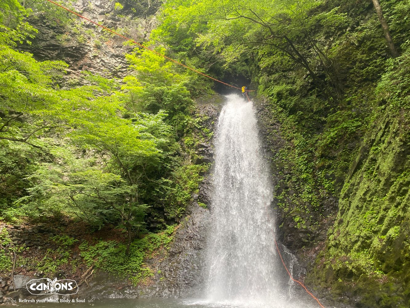 初めての方でも自分自身でロープをコントロールする懸垂下降が体験できる日本では数少ないコースです。キャニオニングスタートポイントまでは下りで歩いて5分なのでアクセスも簡単です。