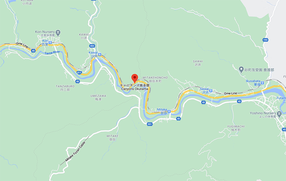 Our Okutama base is easy to access by car and local train. We also offer a pickup shuttle service from Mitake station (3 minutes).