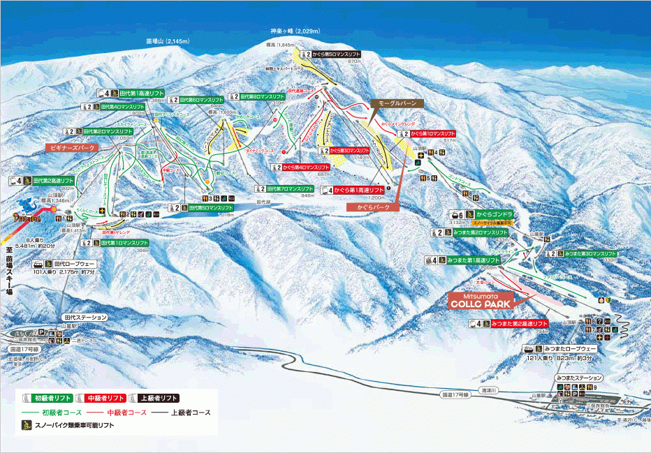 If you are travelling by car, exit the highway at the Yuzawa I.C. (Kan-Etsu Exit 16), all of the resorts have ample parking, though you may have to pay on weekends and busy weekdays.